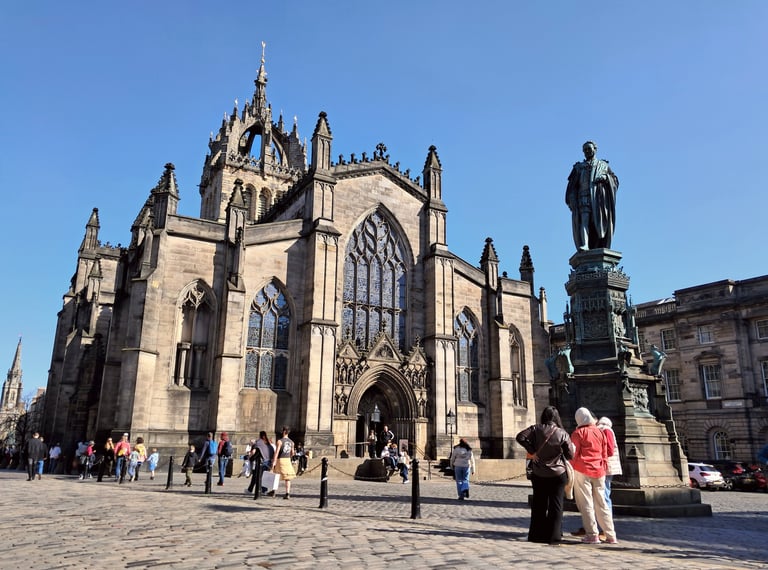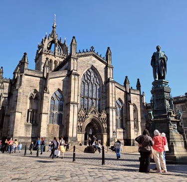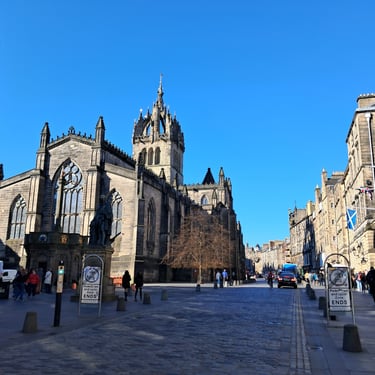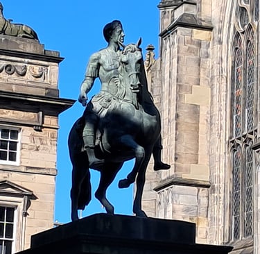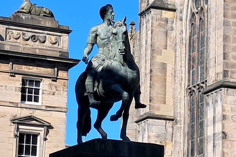 We meet in West Parliament Square, next to St. Giles Cathedral. You'll walk around the cathedral, to Parliament Hall, the statue of Charles II, the Market Cross, the statue of Adam Smith and the High Street (The Royal Mile).